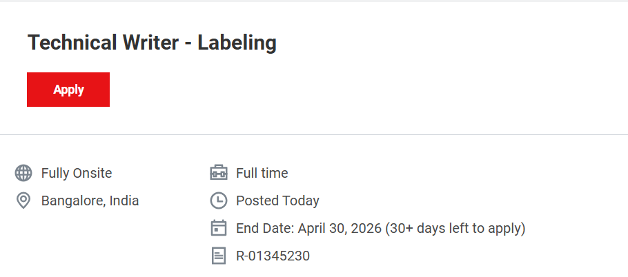 For candidates seeking to build a long-term career in medical device or life science documentation, this role can provide strong professional growth. Technical Writer Labeling Job in Bangalore at Thermo Fisher Scientific