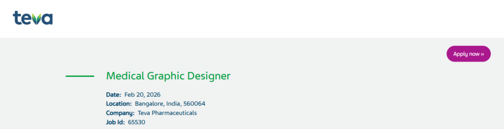 • Apply via Teva careers page and search for the Medical Graphic Designer role in Bangalore